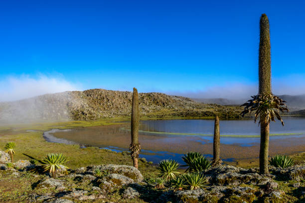 Start the day trekking through Wasema and descending into Worgona Valley. Watch for falcons, raptors, and possibly the Ethiopian wolf. Continue through the most beautiful Afro-alpine moorlands, featuring wild alpine scenery and high-altitude lakes on the Sanetti Plateau. Trekking time: Approximately 7–8 hours. Overnight: Sanetti Campsite. Altitude: 4,100 m a.s.l.